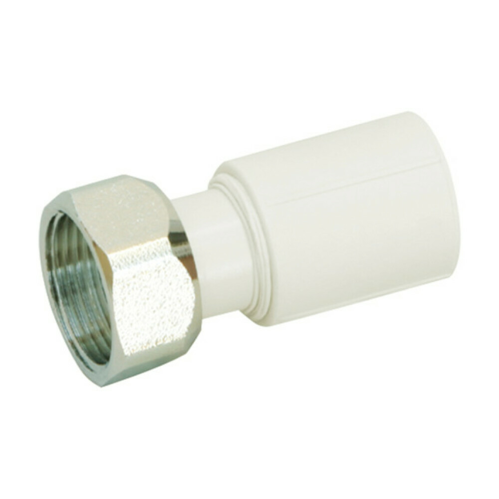 Муфта PPR Blue Ocean з накидною гайкою 32х1" ВР служить для з'єднання поліпропіленової труби зі сталевою або з елементом інженерної системи з нарізним підключенням. Вона складається з поліпропіленового корпусу з внутрішньою трубною різьбою з латуні діаметром 1" і накидної шестигранної гайки. Зі зворотного боку розташований вихід з діаметром 32 мм для підключення методом зварювання. Завдяки матеріалу виготовлення виріб швидко нагрівається та не прилипає до насадок паяльника.